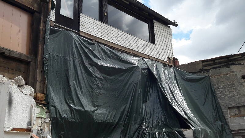 Dachterrasse und Terrasse zurückgebaut, mehrere Anbauten abgerissen, Garagendach entfernt. Entkernungsarbeiten, wie Fenter, Türen, Teppichböden, Dämmwolle, Styropor, usw.